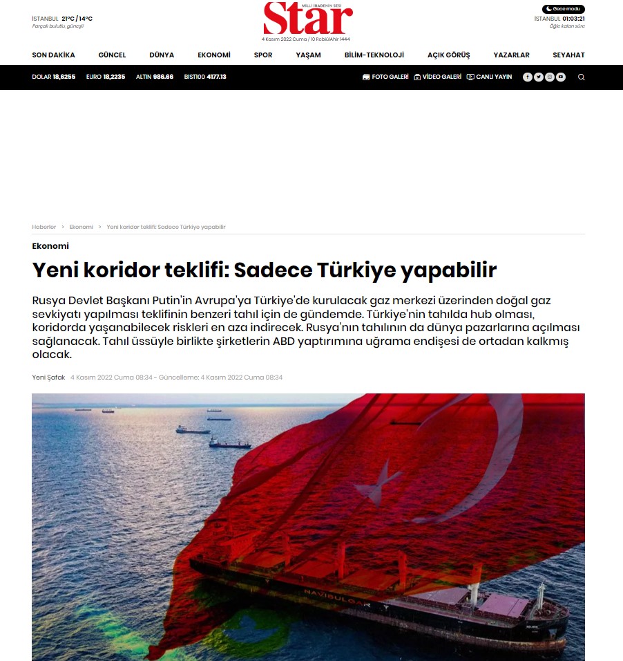 Ankara Kriz ve Siyaset Araştırmaları Merkezi (ANKASAM) Uluslararası İlişkiler Uzmanı Dr. Doğacan Başaran’ın Tahıl Koridoru hakkında Yeni Şafak Gazetesi’ne yaptığı değerlendirmeler, Star Gazetesi’nde yayınlandı.