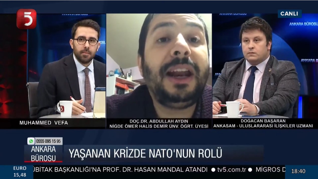 Ankara Kriz ve Siyaset Araştırmaları Merkezi (ANKASAM) Uzmanı Dr. Doğacan Başaran, TV5’te Muhammed Vefa’nın sunduğu Ankara Bürosu programına konuk oldu. Rusya-Ukrayna arasında artan gerilimle ilgili değerlendirmelerde bulunan Başaran, “Görüldüğü kadarıyla savaşı isteyen ABD ve İngiltere’dir. Brexit süreciyle Avrupa’dan kopan İngiltere, Avrasya jeopolitiğine açılma noktasında Doğu Avrupa’yı kullanışlı bir alan olarak görüyor.” ifadelerini kullandı.