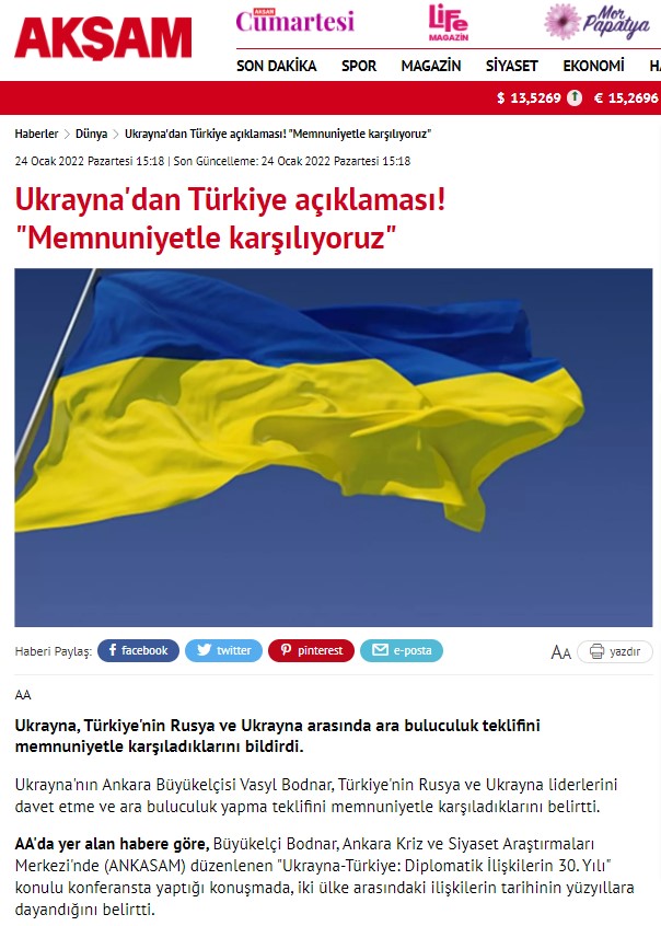 ANKASAM’ın düzenlediği Ukrayna-Türkiye: Diplomatik İlişkilerin 30. Yılı Konferansı Akşam Gazetesi’nde yayınlandı.