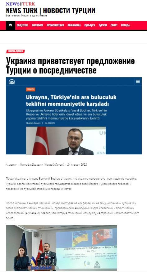 ANKASAM’ın düzenlediği Ukrayna-Türkiye: Diplomatik İlişkilerin 30. Yılı Konferansı Rusça yayın yapan News Turk’de yayınlandı.