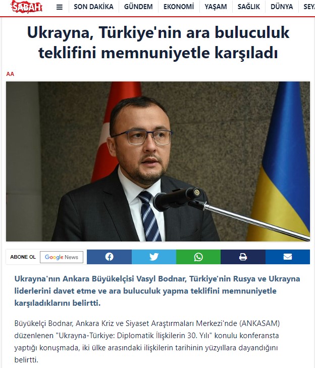 ANKASAM’ın düzenlediği Ukrayna-Türkiye: Diplomatik İlişkilerin 30. Yılı Konferansı Sabah Gazetesi’nde yayınlandı.
