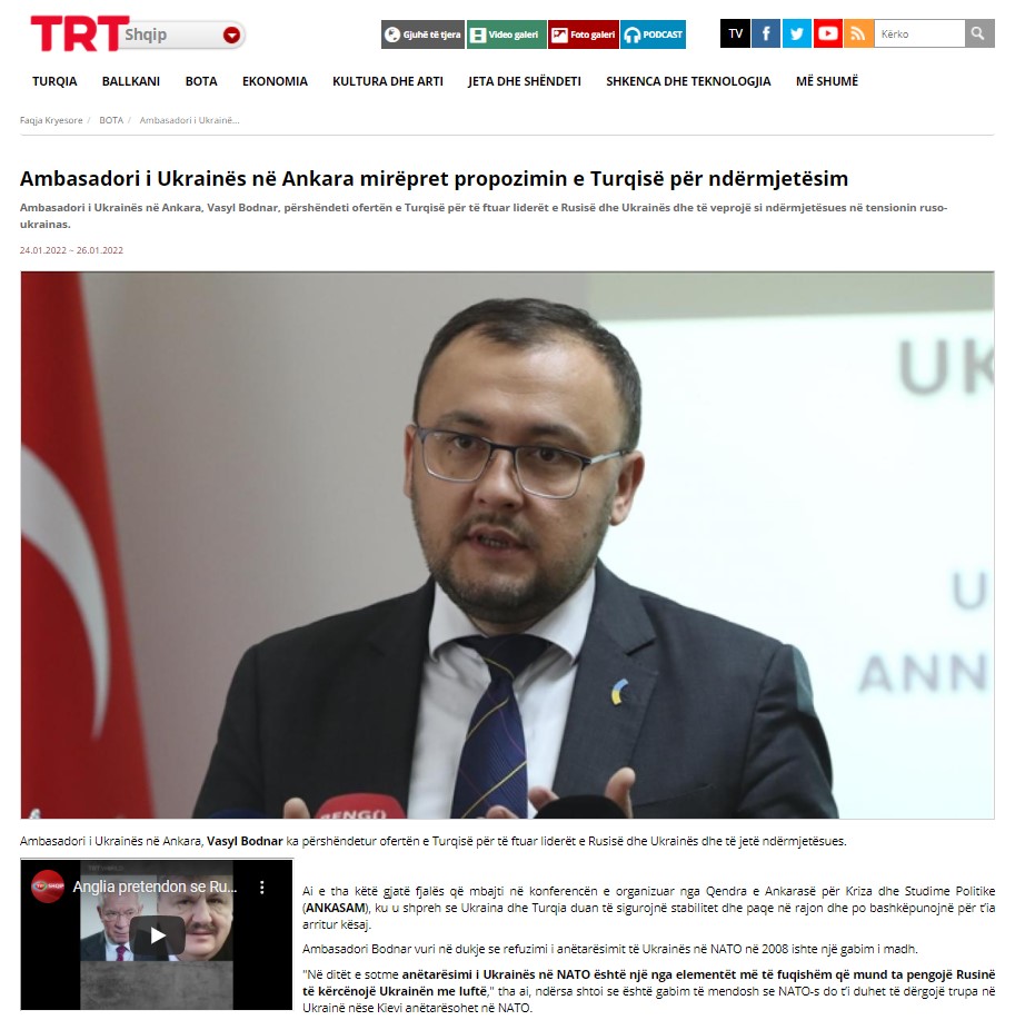 ANKASAM’ın düzenlediği Ukrayna-Türkiye: Diplomatik İlişkilerin 30. Yılı Konferansı TRT Shqip’de yayınlandı.