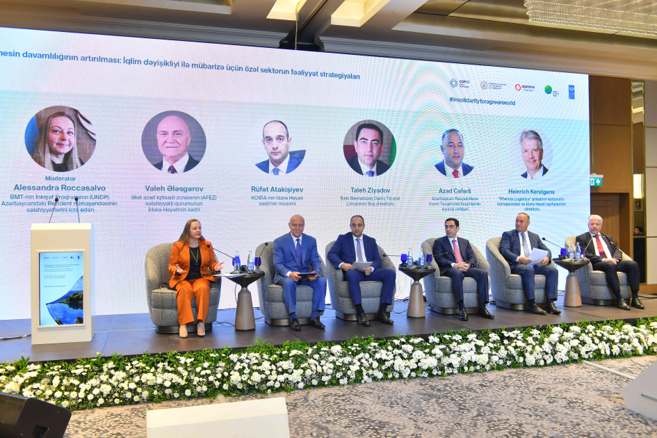 Diğer konuşmalar, iklim değişikliğiyle ilgili önlemlerin finansmanı, özel sektörün yeşil enerjiye geçiş projelerine aktif katılımı, Azerbaycan’ın yeşil enerji potansiyeli ve ülkenin Avrupa’nın enerji güvenliğini sağlamadaki rolüne dikkat çektiler.