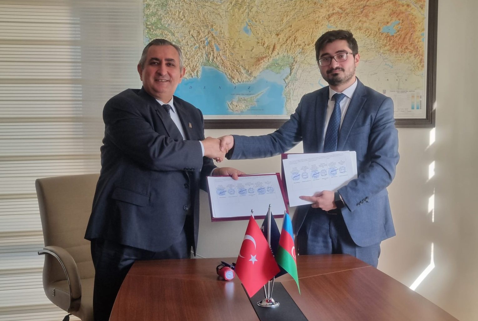 A Memorandum of Understanding (MoU) was signed between the Ankara Centre for Crisis and Political Studies (ANKASAM) and the Economic Scientific Research Institute (ESRI) affiliated to the Ministry of Economy of Azerbaijan Republic. With the MoU signed by ANKASAM President Prof. Dr. Mehmet Seyfettin Erol and ESRI President Mahir Humbatov, it is aimed to increase scientific studies and further develop cooperation between the two countries.