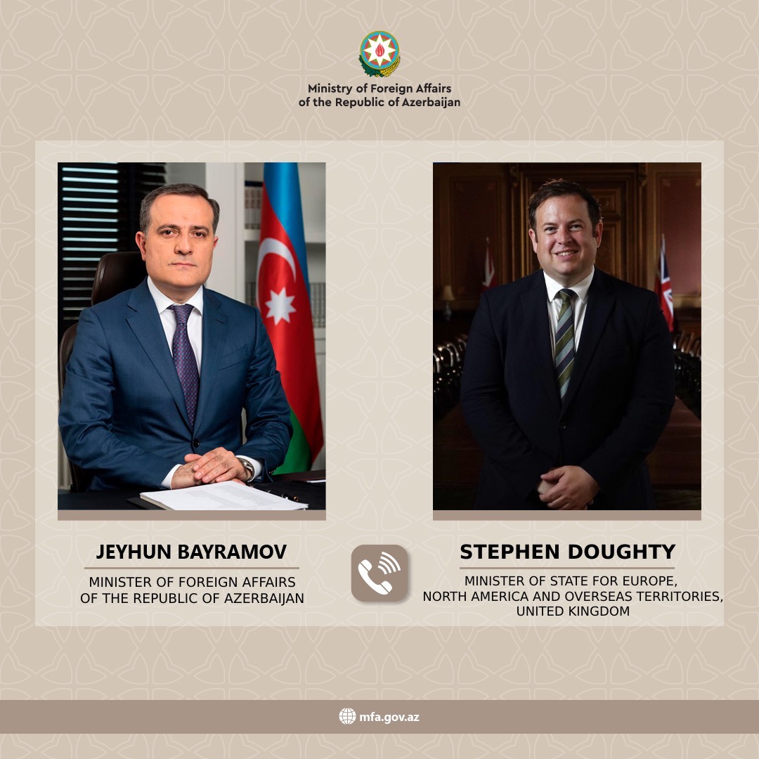 Azerbaijani Foreign Minister Jeyhun Bayramov and Stephen Doughty, the UK Minister of State for Europe, North America and Overseas Territories, held a telephone conversation on April 29.