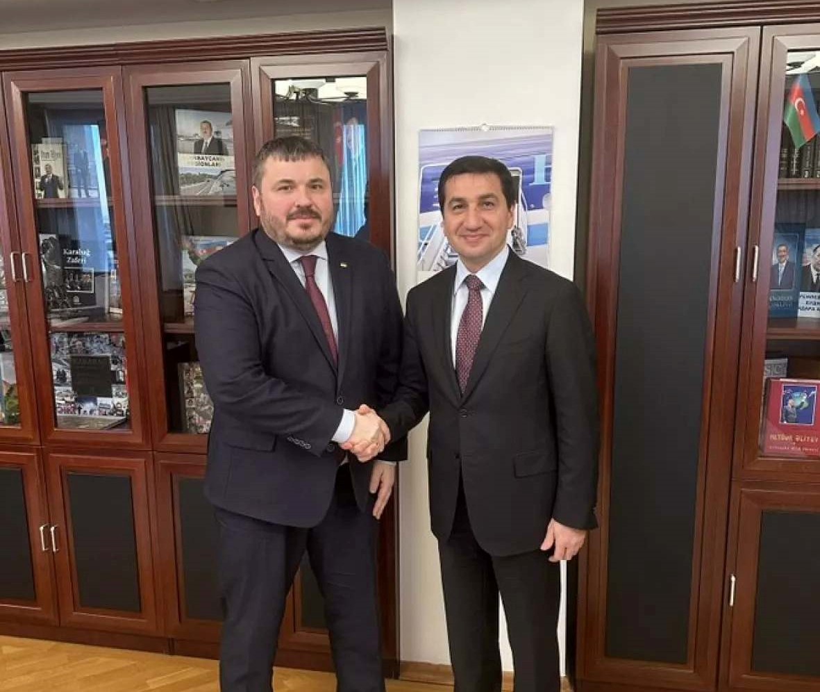 Azerbaycan Cumhurbaşkanı Yardımcısı ve Cumhurbaşkanlığı İdaresi Dış Politika İşleri Daire Başkanı Hikmet Hacıyev ile Ukrayna’nın Azerbaycan Büyükelçisi Yuriy Husyev ekonomik işbirliğini görüştü.