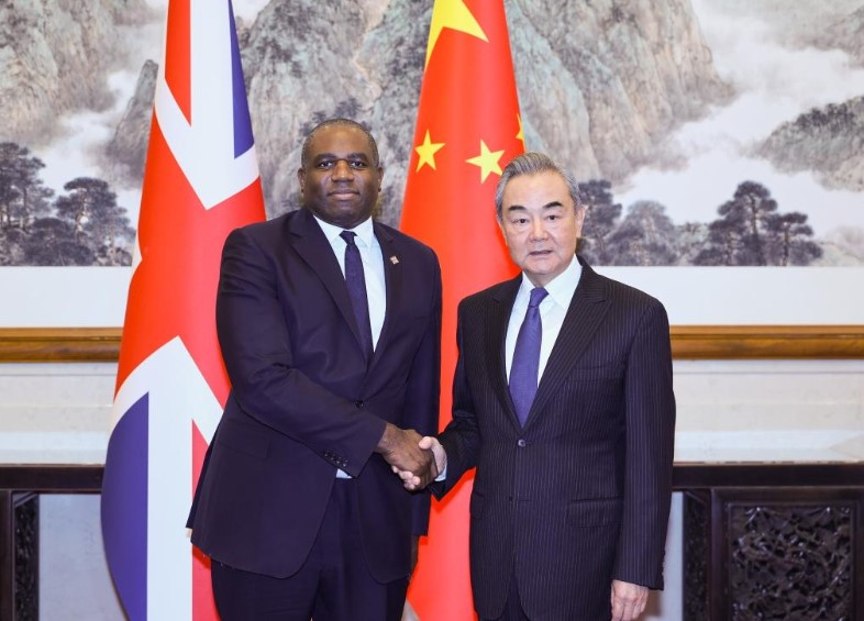 Chinese Foreign Minister Wang Yi held talks with Secretary of State for Foreign, Commonwealth and Development Affairs of the United Kingdom David Lammy in Beijing on Friday.