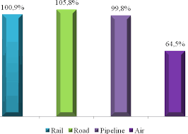 Fig. 2. The growth rates of the volume of cargo sent by transport modes in 2020,