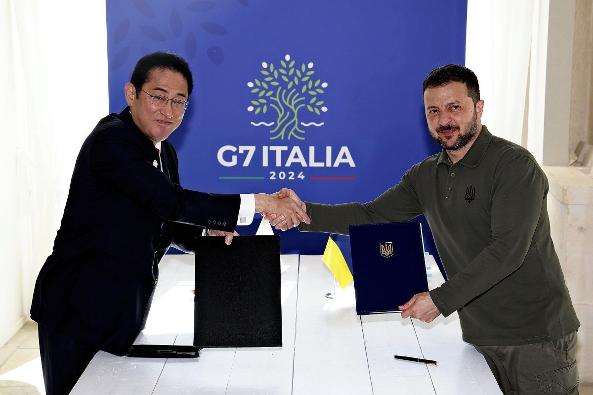 The Japan-Ukraine Support and Cooperation Accord clarifies that Japan would provide nonlethal equipment and supplies as well as treatment for wounded Ukrainian service members within the framework of the Constitution. The two leaders signed the agreement on the sidelines of the Group of Seven summit in Puglia, Italy.