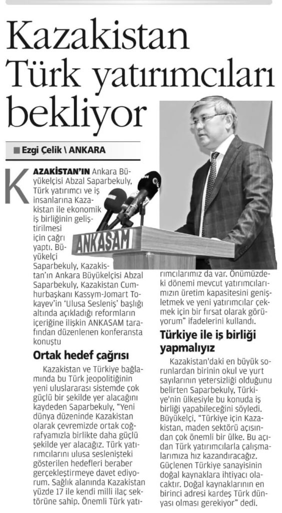 Ankara Kriz ve Siyaset Araştırmaları Merkezi’nin 07.09.2021 tarihinde düzenlemiş olduğu, Kassym-Jomart Tokayev’in Ulusa Seslenişi üzerine organize edilen etkinlikte, Kazakistan Ankara Büyükelçisi Abzal Saparbekuly “Kazakistan Cumhurbaşkanı Kassym-Jomart Tokayev’in Ulusa Seslenişi: Sistemli Reformlara Devam” başlıklı konuşma yaptı.