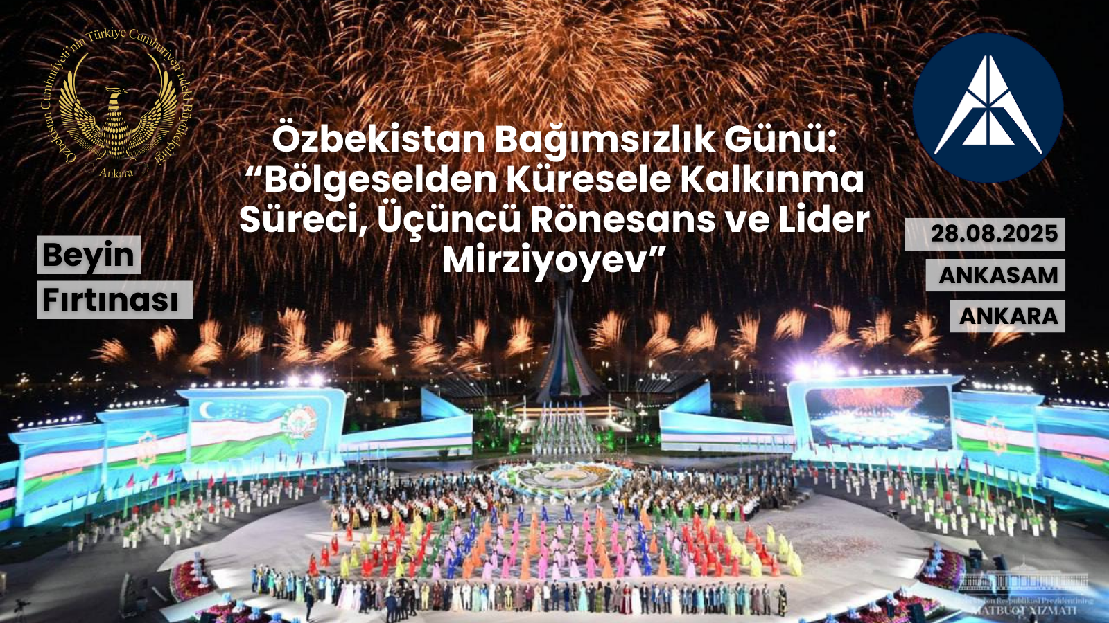 28 Ağustos 2025 tarihinde, Ankara Kriz ve Siyaset Araştırmaları Merkezi (ANKASAM) ev sahipliğinde, Özbekistan’ın Ankara Büyükelçisi Sayın İlham HAYDAROV’un ve ANKASAM Başkanı Prof. Dr. Mehmet Seyfettin EROL başkanlığındaki diplomat ve uzmanların katılımıyla “Özbekistan Bağımsızlık Günü: Bölgeselden Küresele Kalkınma Süreci, Üçüncü Rönesans ve Lider MİRZİYOYEV” başlıklı yuvarlak masa toplantısı gerçekleştirildi.
