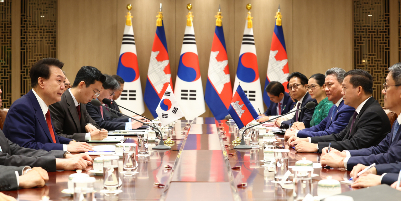 “Since the reestablishment of relations in 1997, the bilateral ties have greatly improved. Trade volume rose 20-fold, people-to-people exchanges grew 150-fold, and Korea rose to the country with the second-largest investment in Cambodia. Moreover, some 10,000 multicultural families have bound the two countries together,” Yoon said in the opening remarks at the summit.