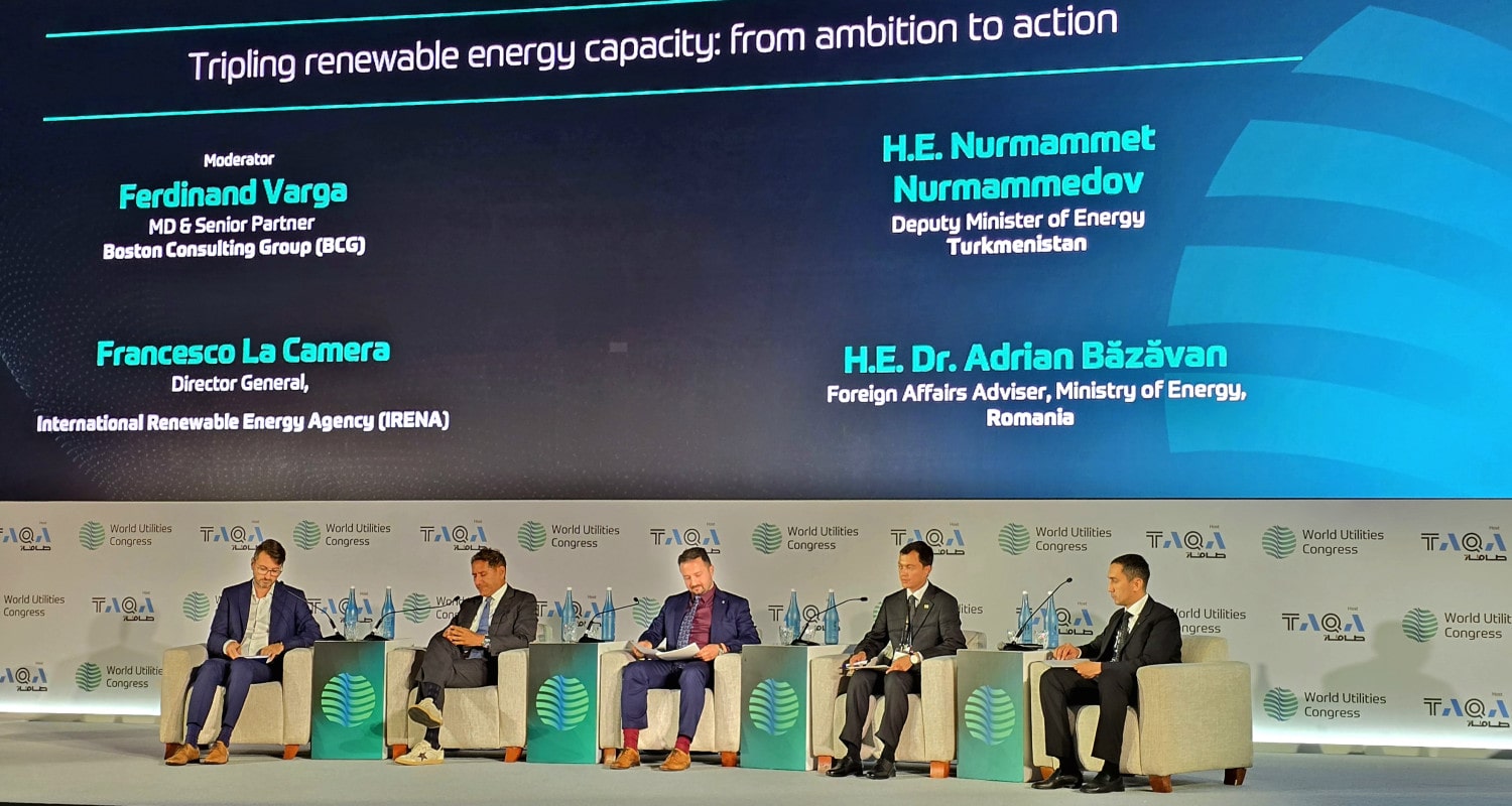 Türkmenistan Enerji Bakan Yardımcısı Nurmammet Nurmammedov, “Yenilenebilir enerji kaynaklarının kapasitesinin üç katına çıkarılması: planlardan eyleme” başlıklı oturumda, yenilenebilir enerji alanındaki mevcut girişimler ve ülkenin geleceği hakkında ayrıntılı bilgi verdi.