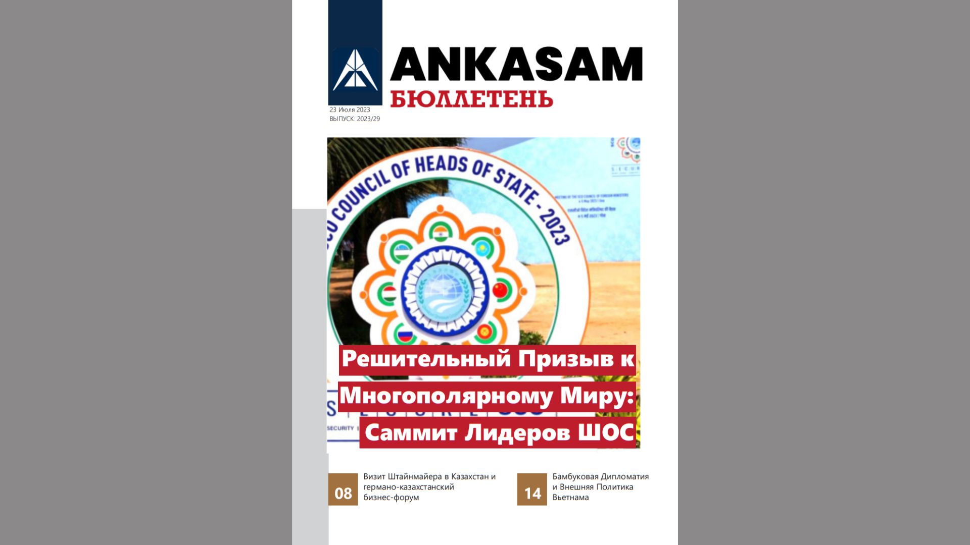 Опубликован Еженедельный бюллетень, в котором представлены мероприятия, проведенные АНКАСАМ в период с 17 по 23 июля 2022 года. Еженедельный бюллетень АНКАСАМ включает в себя все анализы за неделю, обзоры и информацию о деятельности его консультантов и экспертов в СМИ.