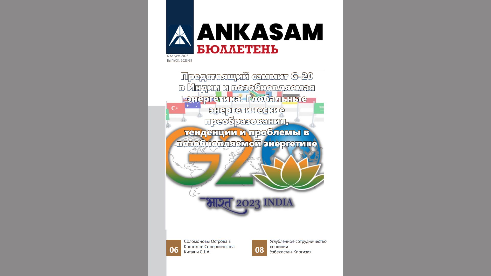 Опубликован Еженедельный бюллетень, в котором представлены мероприятия, проведенные АНКАСАМ в период с 31 июля по 6 августа 2023 года. Еженедельный бюллетень АНКАСАМ включает в себя все анализы за неделю, обзоры и информацию о деятельности его консультантов и экспертов в СМИ.