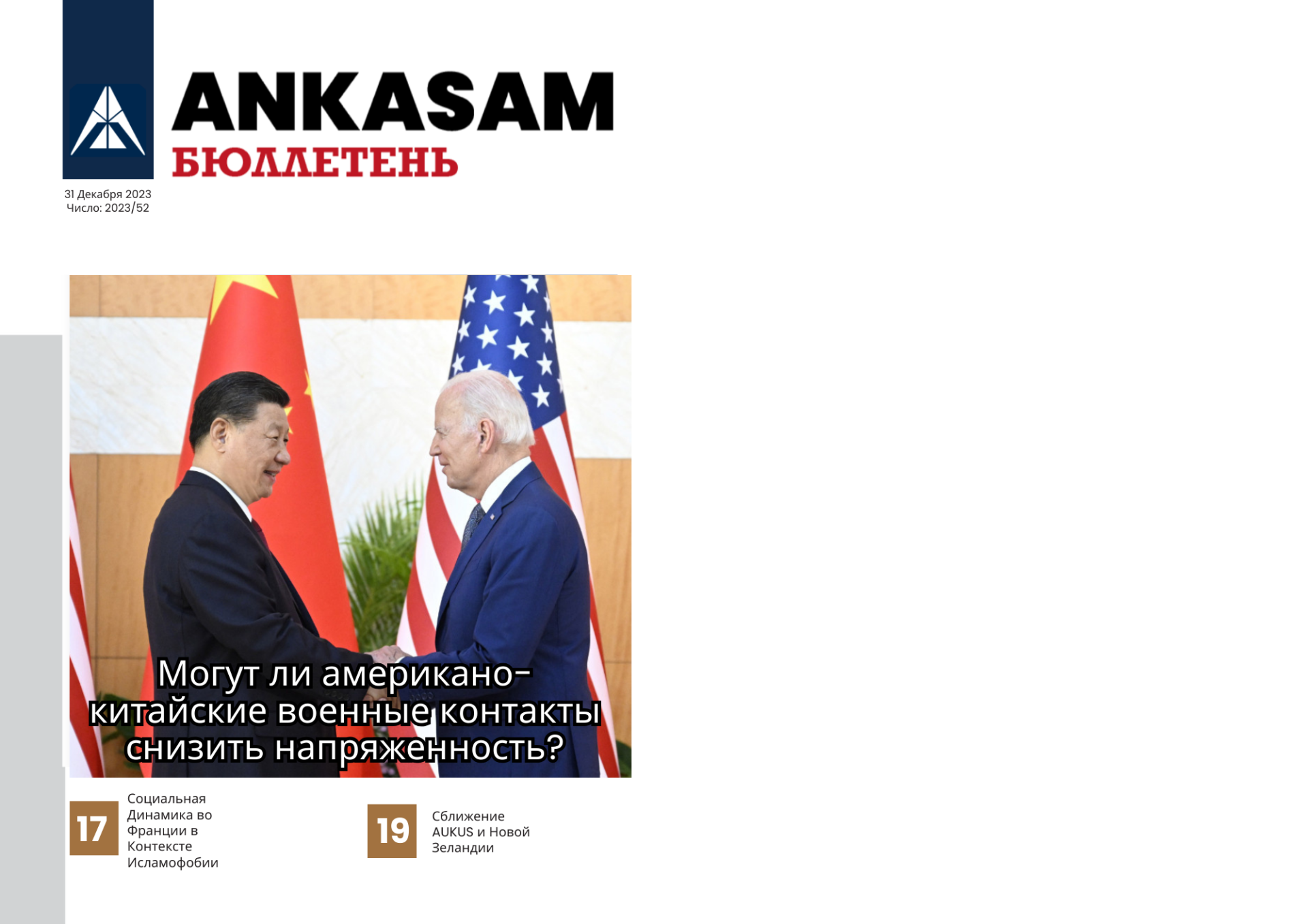 АНКАСАМ опубликовал еженедельный бюллетень, в котором представлены вам все мероприятия, проведенные АНКАСАМ с 24 Декабрь 31 Декабрь2023 года. В АНКАСАМ Weekly Bulletin содержатся все анализы недели, оценки ANKASAM Bakış и медийные мероприятия консультантов и экспертов АНКАСАМ.