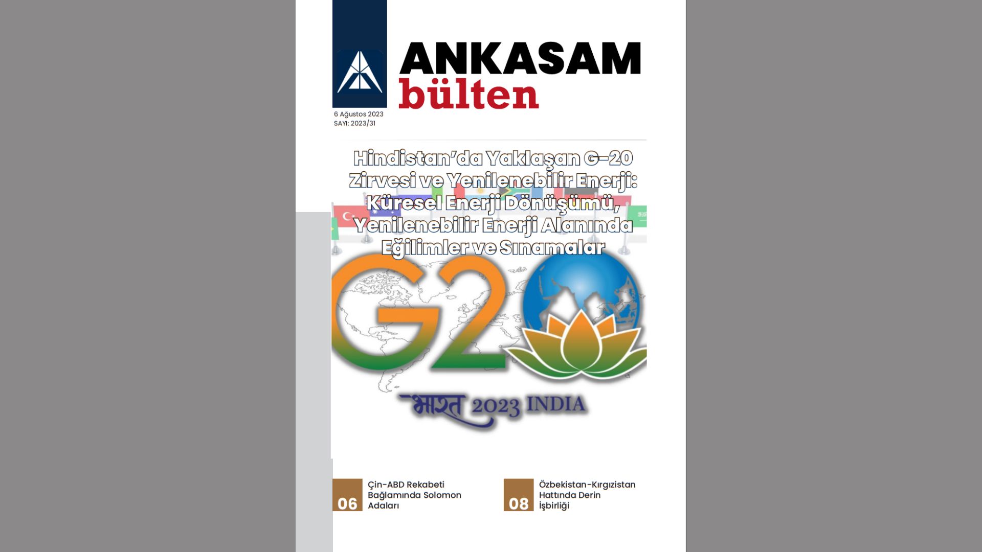 31 Temmuz – 6 Ağustos 2023 tarihleri arasında ANKASAM tarafından gerçekleştirilen faaliyetlerin sizlere toplu bir şekilde sunulduğu Haftalık Bülten yayımlanmıştır. ANKASAM Haftalık Bülten’de; haftanın bütün analizleri, ANKASAM Bakış değerlendirmeleri ile ANKASAM danışman ve uzmanlarının medya faaliyetleri yer almaktadır.