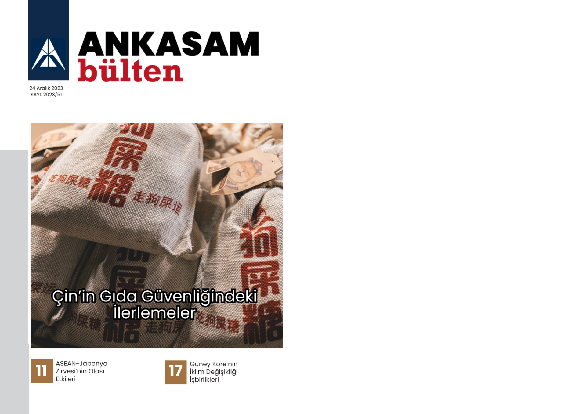 18 Aralık – 24 Aralık 2023 tarihleri arasında ANKASAM tarafından gerçekleştirilen faaliyetlerin sizlere toplu bir şekilde sunulduğu Haftalık Bülten yayımlanmıştır. ANKASAM Haftalık Bülten’de; haftanın bütün analizleri, ANKASAM Bakış değerlendirmeleri ile ANKASAM danışman ve uzmanlarının medya faaliyetleri yer almaktadır.
