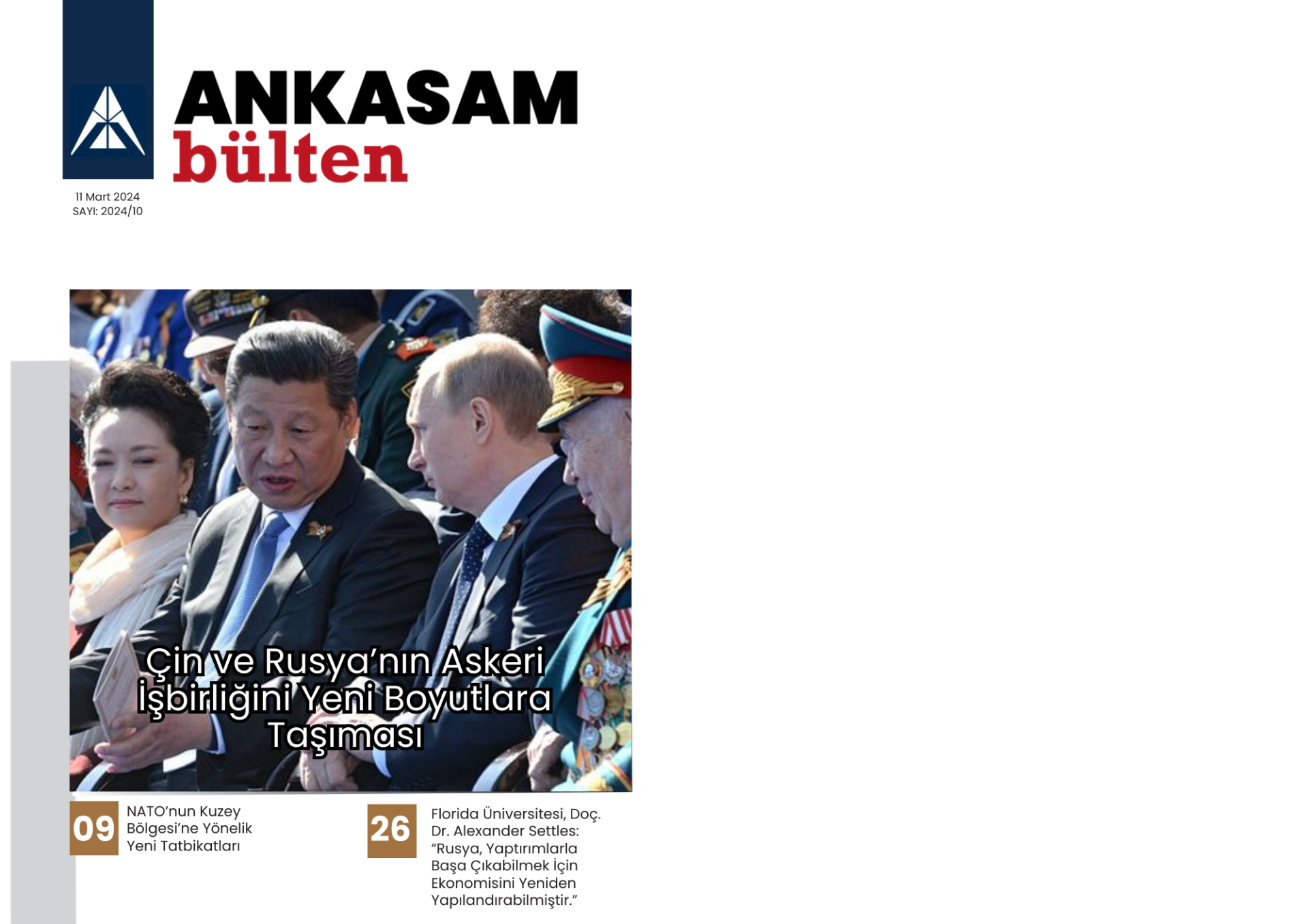 04 Mart – 10 Mart 2024 tarihleri arasında ANKASAM tarafından gerçekleştirilen faaliyetlerin sizlere toplu bir şekilde sunulduğu Haftalık Bülten yayımlanmıştır. ANKASAM Haftalık Bülten’de; haftanın bütün analizleri, ANKASAM Bakış değerlendirmeleri ile ANKASAM danışman ve uzmanlarının medya faaliyetleri yer almaktadır.