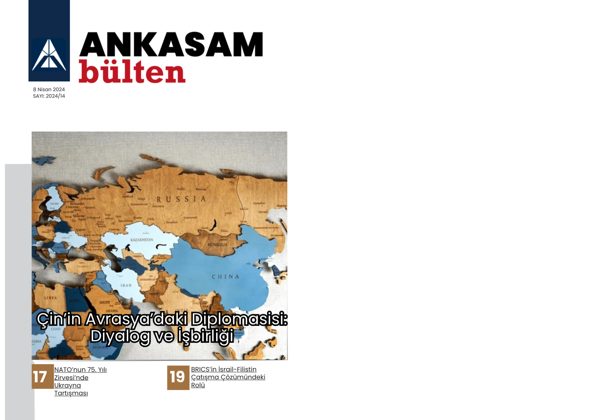 1 Nisan – 7 Nisan 2024 tarihleri arasında ANKASAM tarafından gerçekleştirilen faaliyetlerin sizlere toplu bir şekilde sunulduğu Haftalık Bülten yayımlanmıştır. ANKASAM Haftalık Bülten’de; haftanın bütün analizleri, ANKASAM Bakış değerlendirmeleri ile ANKASAM danışman ve uzmanlarının medya faaliyetleri yer almaktadır.
