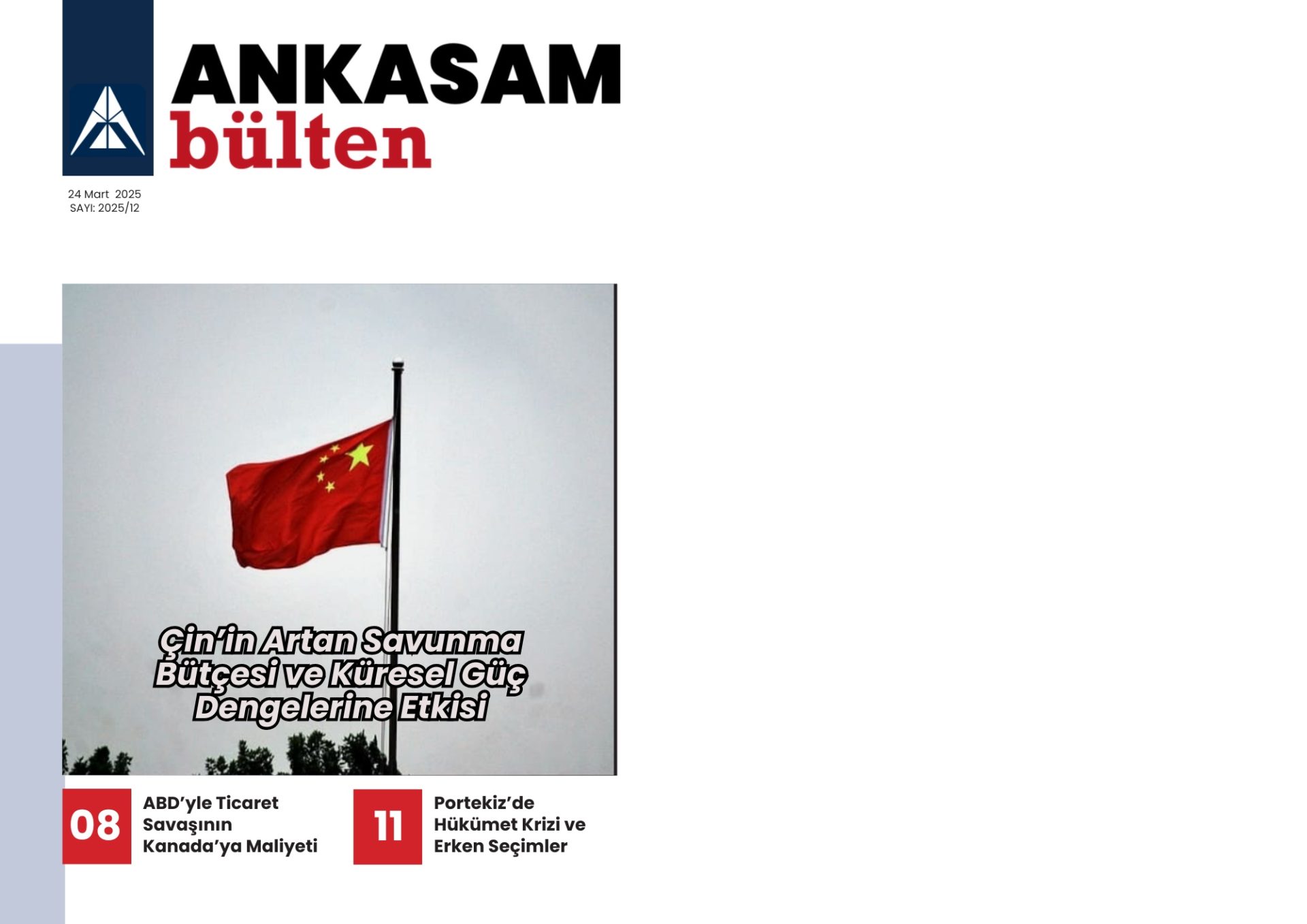 17 Mart – 23 Mart 2025 tarihleri arasında ANKASAM tarafından gerçekleştirilen faaliyetlerin sizlere toplu şekilde sunulduğu Haftalık Bülten yayımlanmıştır. ANKASAM Haftalık Bülten’de; haftanın bütün analizleri, ANKASAM Bakış değerlendirmeleri ile ANKASAM danışman ve uzmanlarının medya faaliyetleri yer almaktadır.