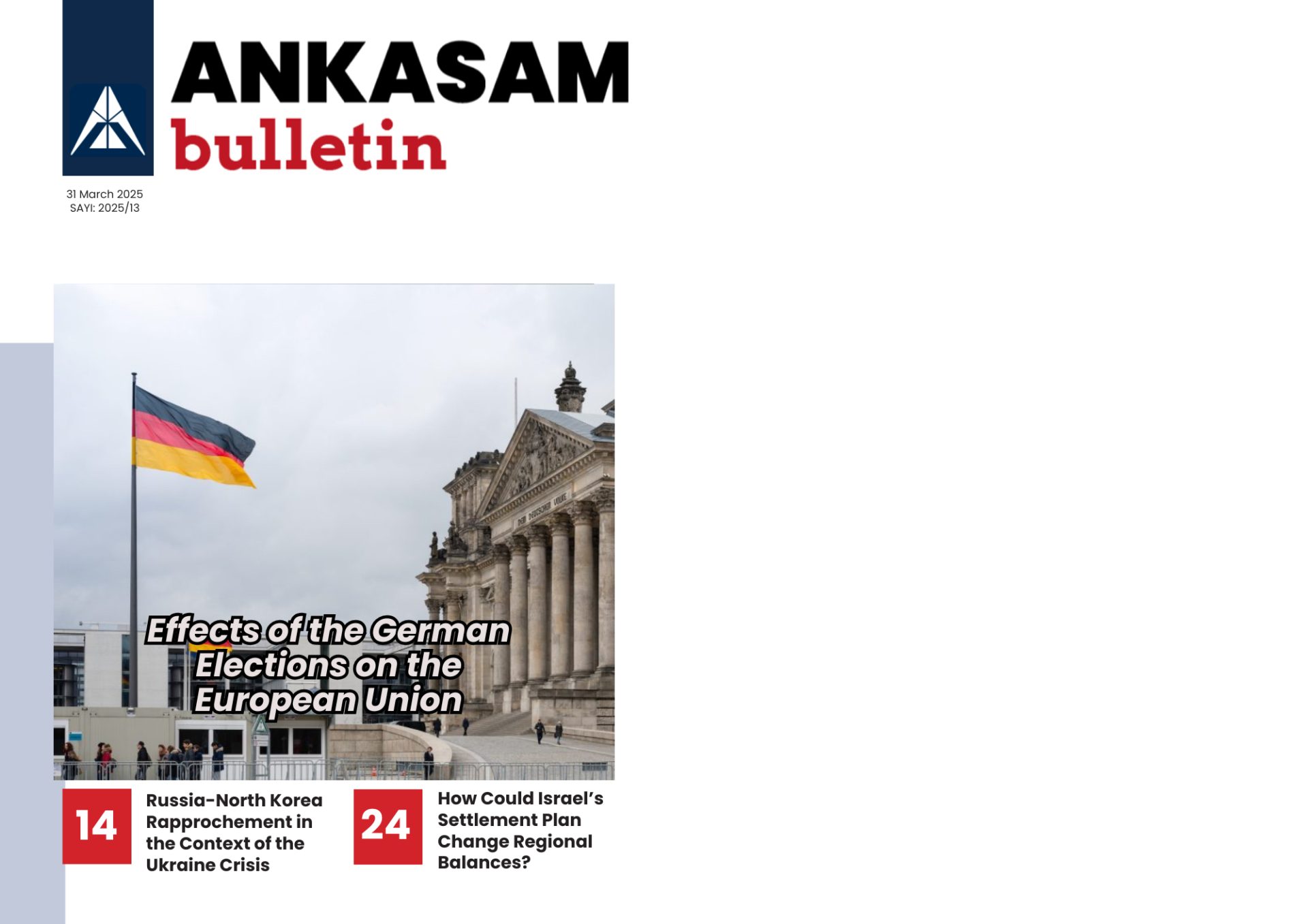 The Weekly Bulletin has been published, in which the activities carried out by ANKASAM between 24 March – 30 March 2025 are presented to you collectively. In ANKASAM Weekly Bulletin; All analyzes of the week, ANKASAM Outlook evaluations and media activities of ANKASAM consultants and experts are included.