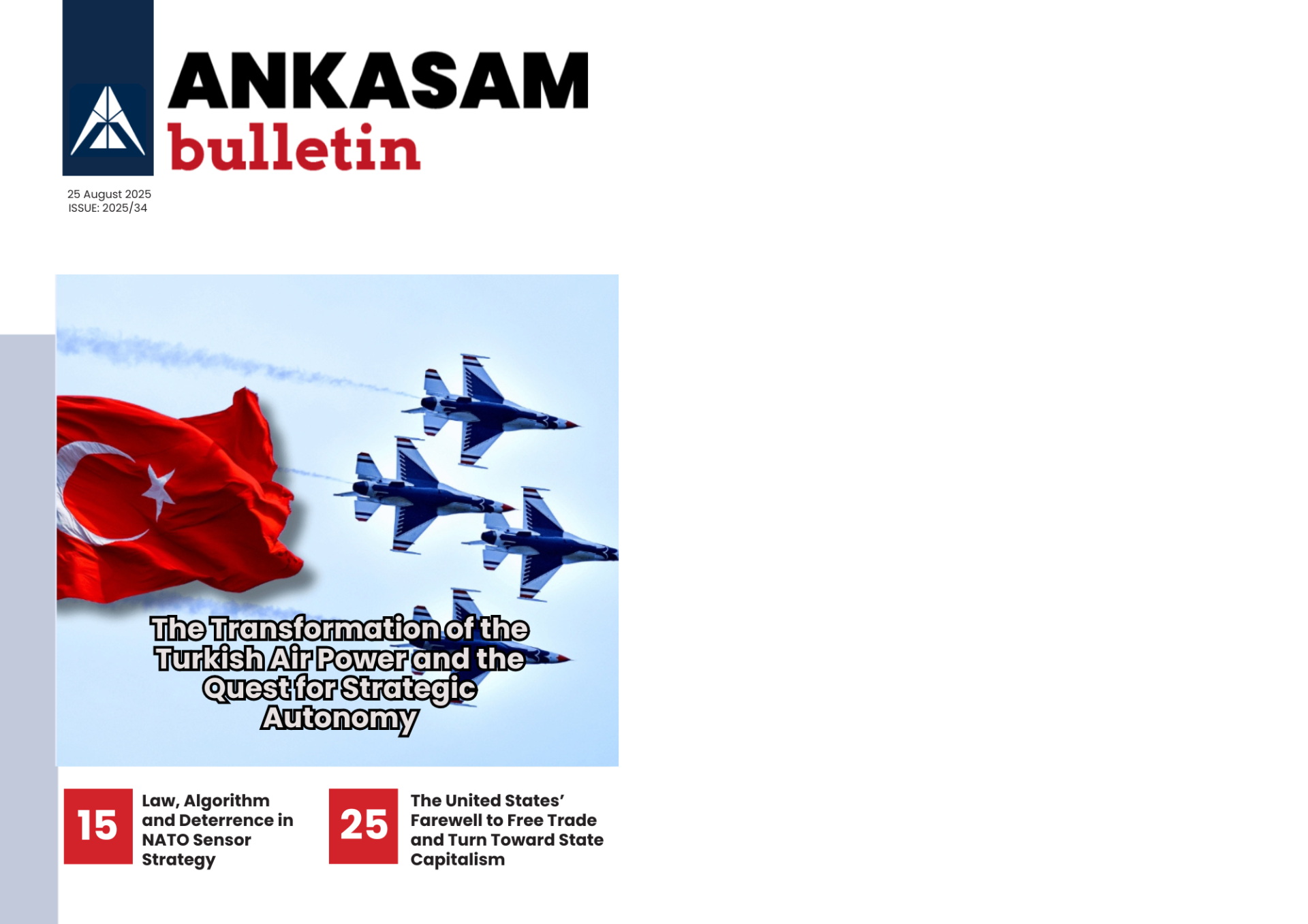 The Weekly Bulletin, which presents ANKASAM’s activities between August 18 and August 24, 2025, has been published. The ANKASAM Weekly Bulletin includes all of the week’s analyses, ANKASAM Perspective assessments, and the media activities of ANKASAM consultants and experts.