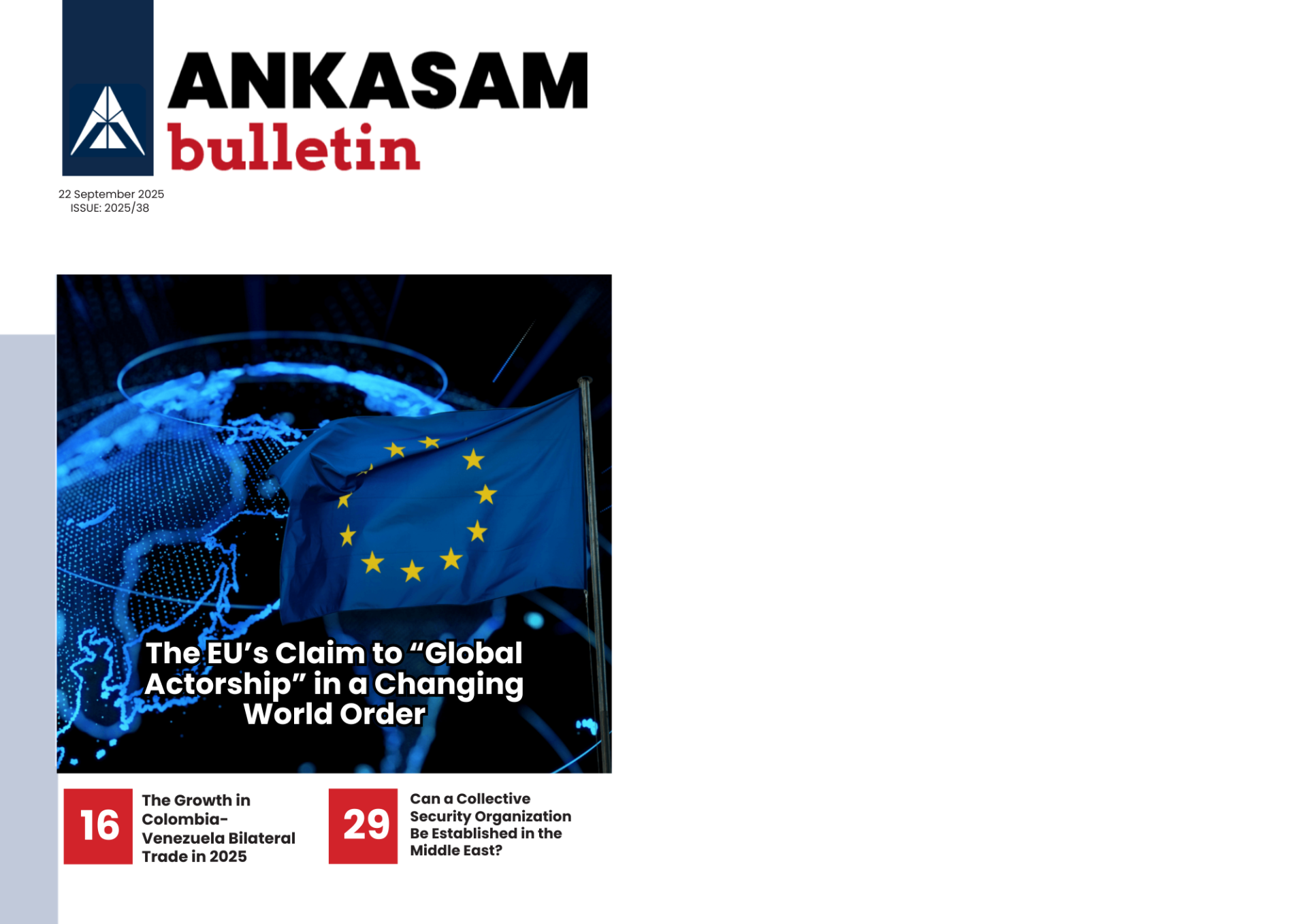 The Weekly Bulletin, which presents ANKASAM’s activities between September 15 and September 21, 2025, has been published. The ANKASAM Weekly Bulletin includes all of the week’s analyses, ANKASAM Perspective assessments, and the media activities of ANKASAM consultants and experts.
