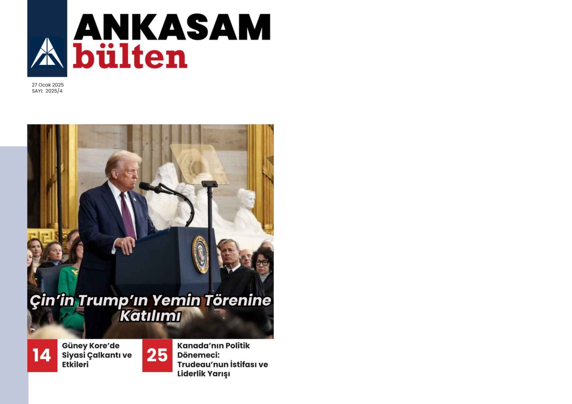20 Ocak – 26 Ocak 2025 tarihleri arasında ANKASAM tarafından gerçekleştirilen faaliyetlerin sizlere toplu şekilde sunulduğu Haftalık Bülten yayımlanmıştır. ANKASAM Haftalık Bülten’de; haftanın bütün analizleri, ANKASAM Bakış değerlendirmeleri ile ANKASAM danışman ve uzmanlarının medya faaliyetleri yer almaktadır.