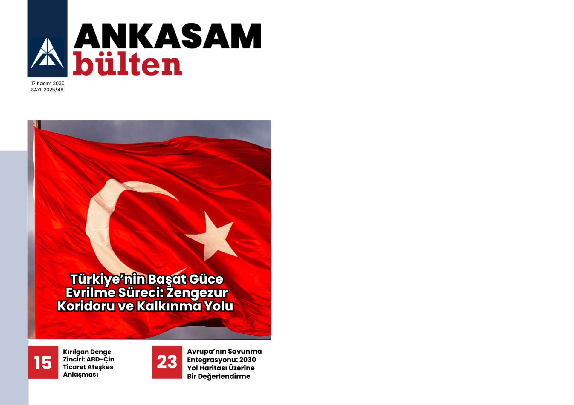 10 Kasım – 16 Kasım 2025 tarihleri arasında ANKASAM tarafından gerçekleştirilen faaliyetlerin sizlere toplu şekilde sunulduğu Haftalık Bülten yayımlanmıştır. ANKASAM Haftalık Bülten’de; haftanın bütün analizleri, ANKASAM Bakış değerlendirmeleri ile ANKASAM danışman ve uzmanlarının medya faaliyetleri yer almaktadır.