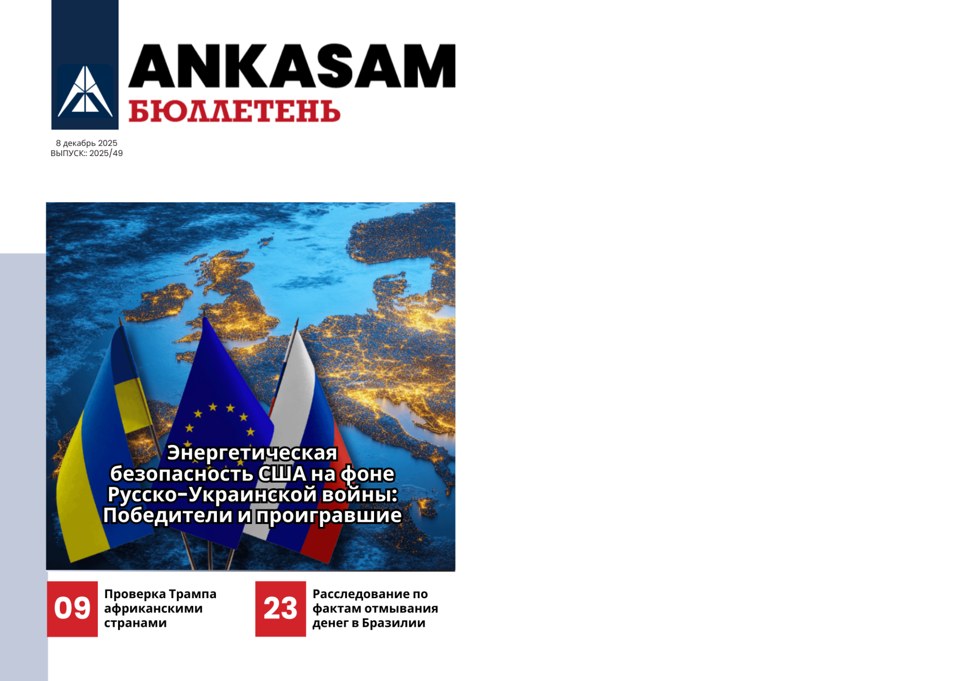 Опубликован еженедельный бюллетень, в котором представлены все мероприятия, проведенные ANKASAM в период с 1 декабрь по 7 декабрь 2025 года. В еженедельном бюллетене AHKACAM представлены все аналитические материалы недели, оценки AHKACAM Bakış, а также информация о медийной деятельности консультантов и экспертов AHKACAM.