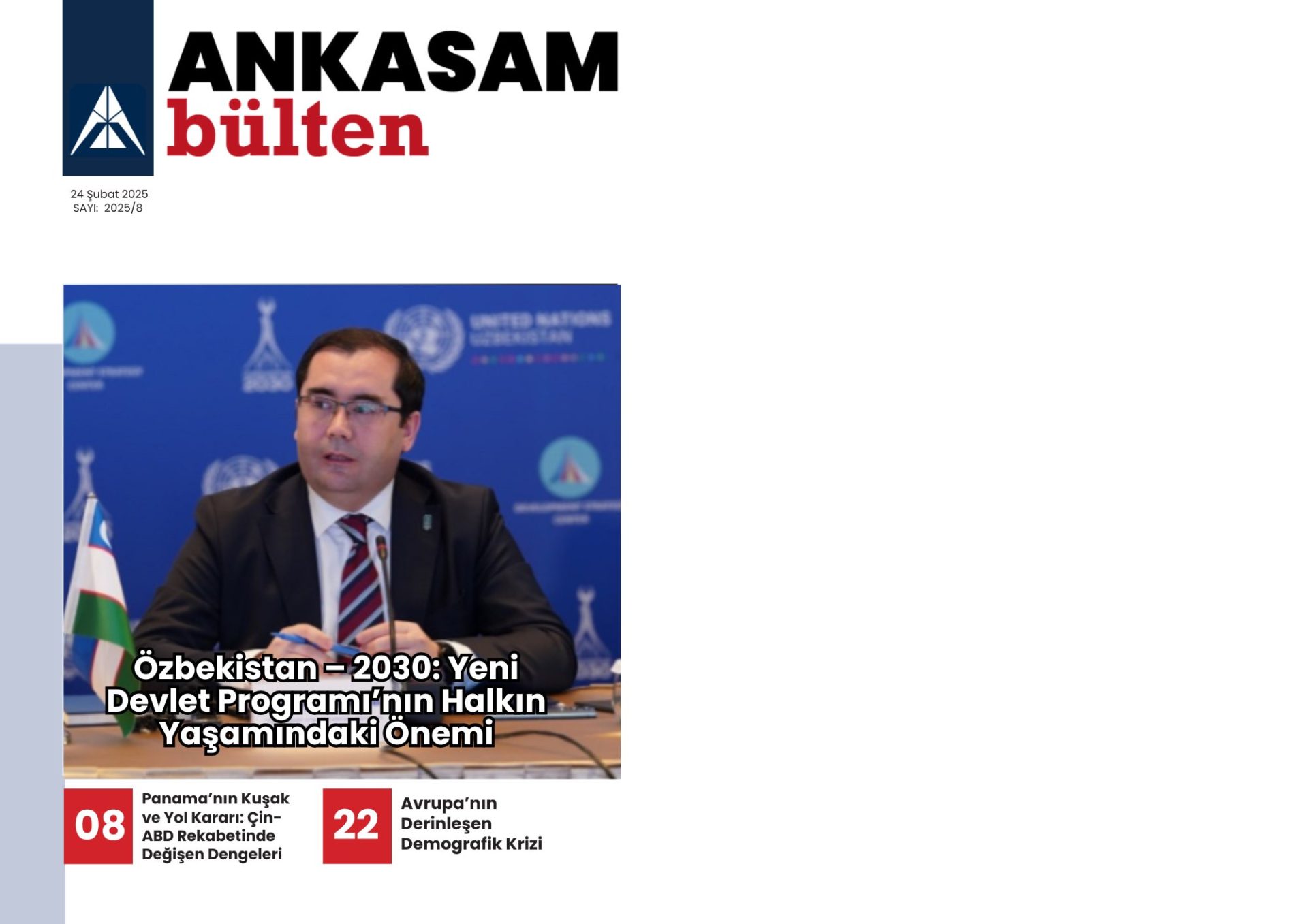 17 Şubat – 23 Şubat 2025 tarihleri arasında ANKASAM tarafından gerçekleştirilen faaliyetlerin sizlere toplu şekilde sunulduğu Haftalık Bülten yayımlanmıştır. ANKASAM Haftalık Bülten’de; haftanın bütün analizleri, ANKASAM Bakış değerlendirmeleri ile ANKASAM danışman ve uzmanlarının medya faaliyetleri yer almaktadır.